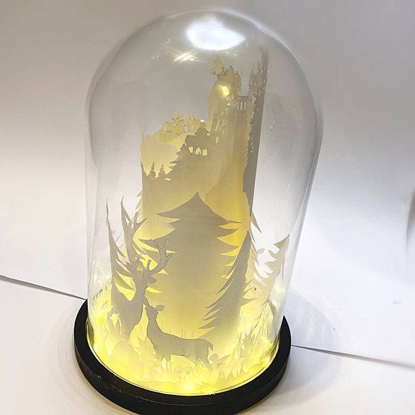 De workshop Winterlandschap in glazen stolp is een digitale cursus die je in je eigen tempo volgt. Je ontvangt een uitgebreid PDF-bestand met een helder stappenplan, duidelijke foto’s en printbare sjablonen voor de bergen, bomen en hertjes. Zo kun je eenvoudig zelf aan de slag, ook zonder eerdere ervaring met papierkunst.
